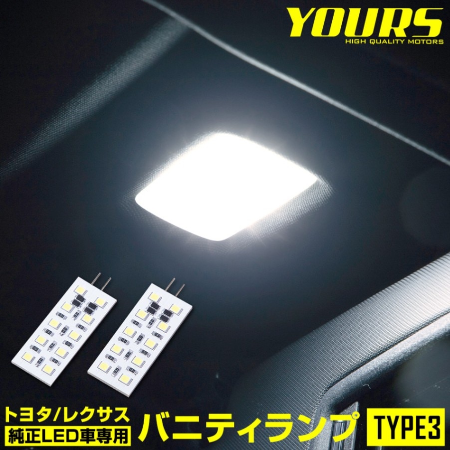 純正のバニティランプ、ラゲッジルームランプ、パワーバックドアランプを高輝度LEDタイプに交換。